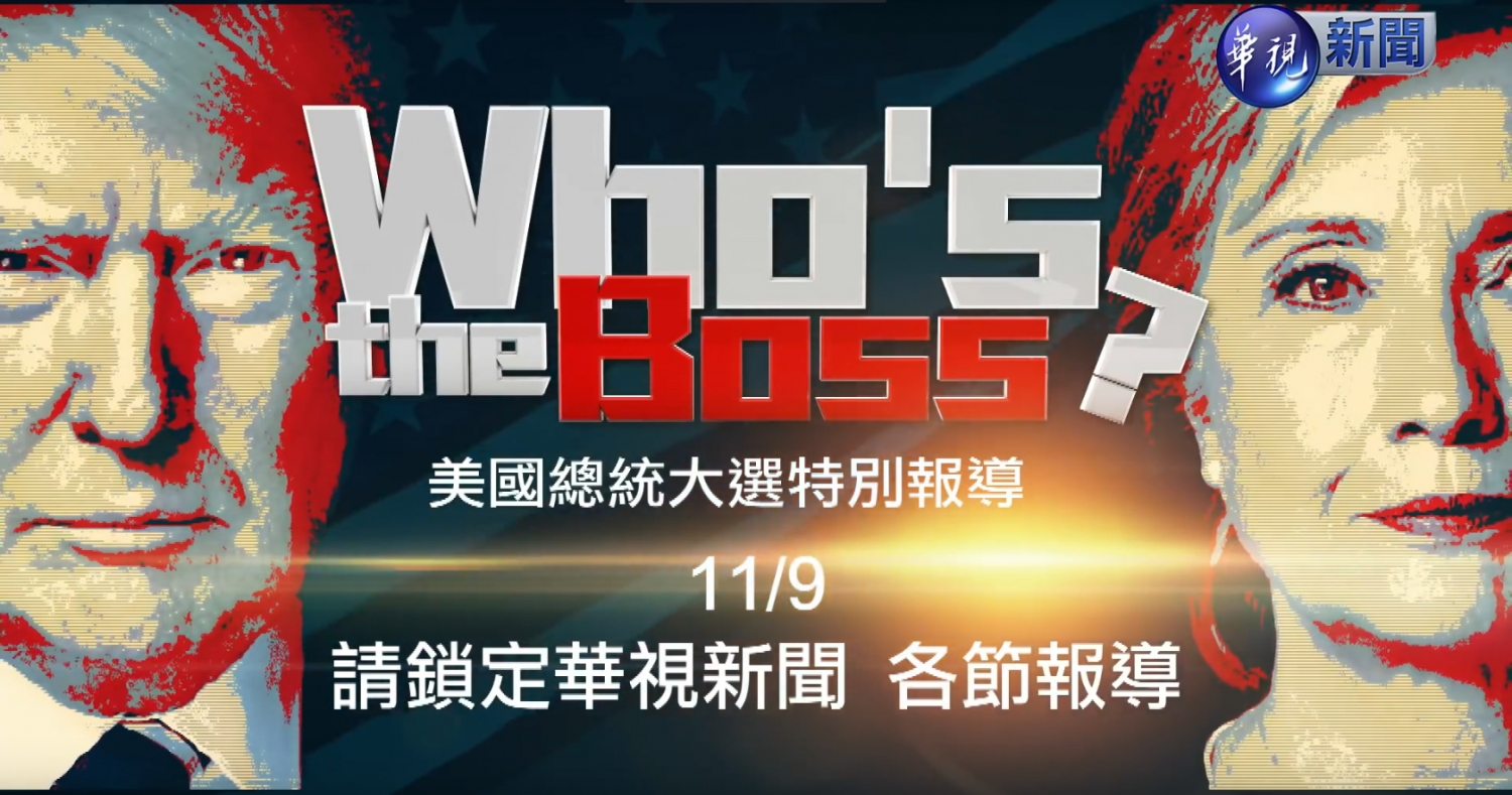 華視新聞關心美國總統選情,派出最專業的團隊,在台灣時間11月9日推出Who’s The Boss「美國大選特別報導」,進行最快速的選情分析與美國選後的未來趨勢,新聞部經理劉正薇表示:「關心國際局勢與國際政壇未來走向,華視派出重量級主播之外,也找來專業口譯同步直譯選情,並搭配專家來解析美國下一屆總統當選人將會替全球帶來什麼震撼風暴」。