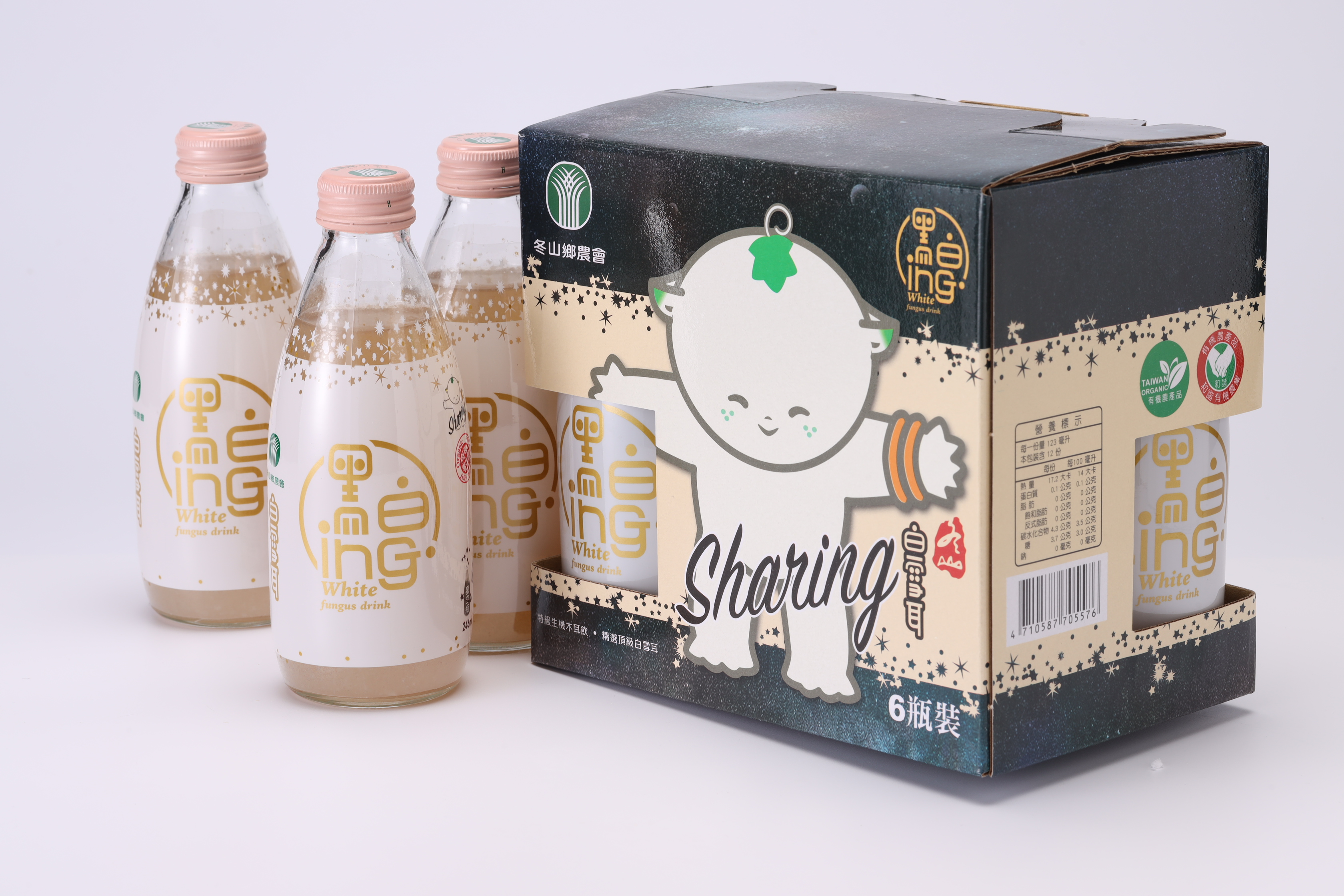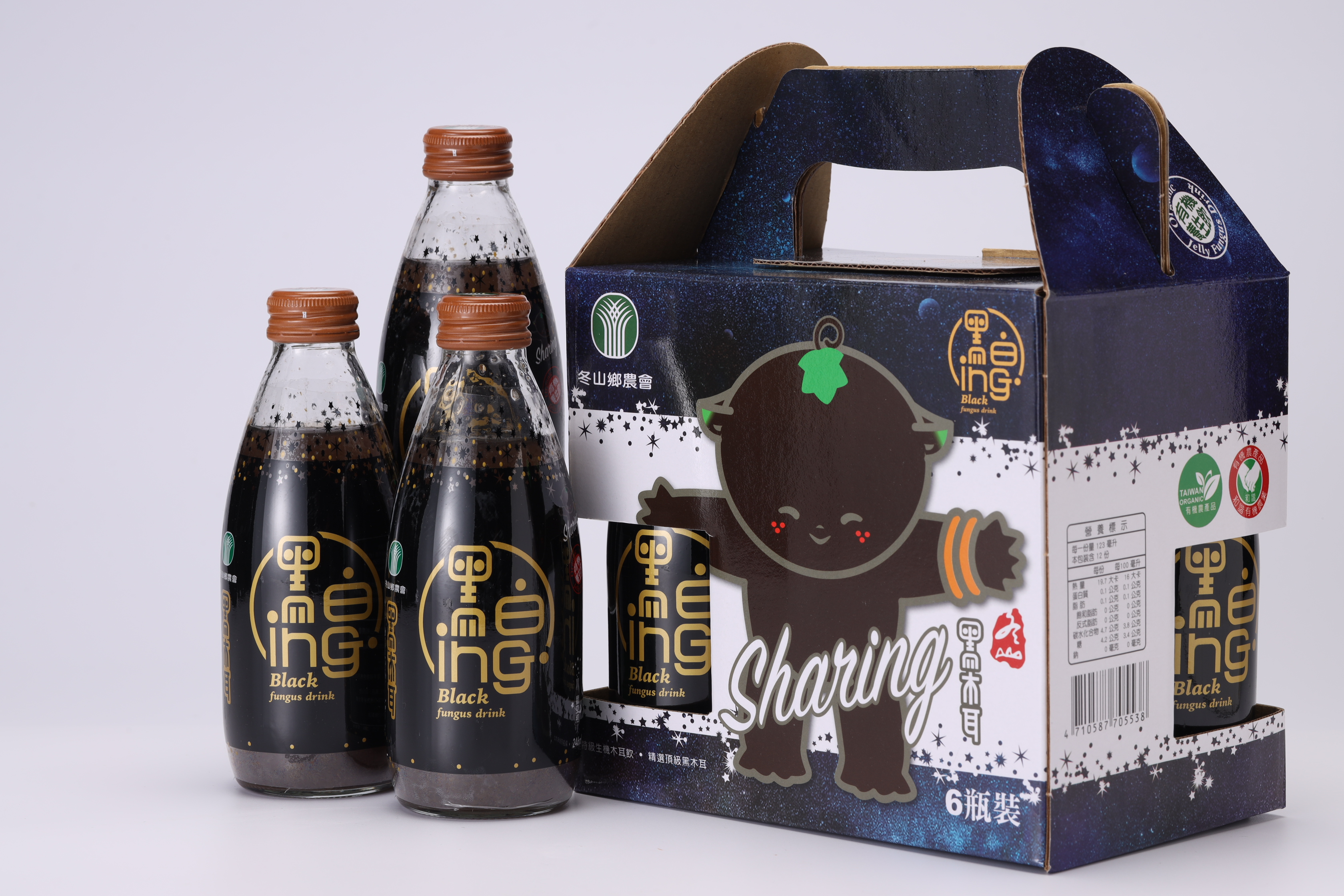 知道現代人重養生的有機飲食需求,冬山鄉農會投入種植研發出有機有機黑木耳飲,成份簡單到只有有機黑木耳、有機晶冰糖和水,更堅持使用玻璃瓶裝高溫高壓滅菌,即開即喝。