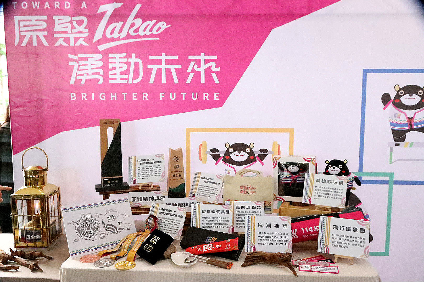 記者會上亮相獎牌及獎座,不僅代表著勝利的榮耀,也蘊藏著對原住民族文化與運動精神的致敬。其中,《山河榮鷹》個人獎牌以「山」為設計靈感,象徵著運動員勇攀巔峰的精神,更融入高雄獨特的地景與族群故事,將高屏溪流域的水文與原住民族文化巧妙結合,兩側點綴的雄鷹羽毛,代表著原住民族勇士的堅毅與榮耀,展現傳承與榮耀的完美交融,打造最有故事的獎牌。
