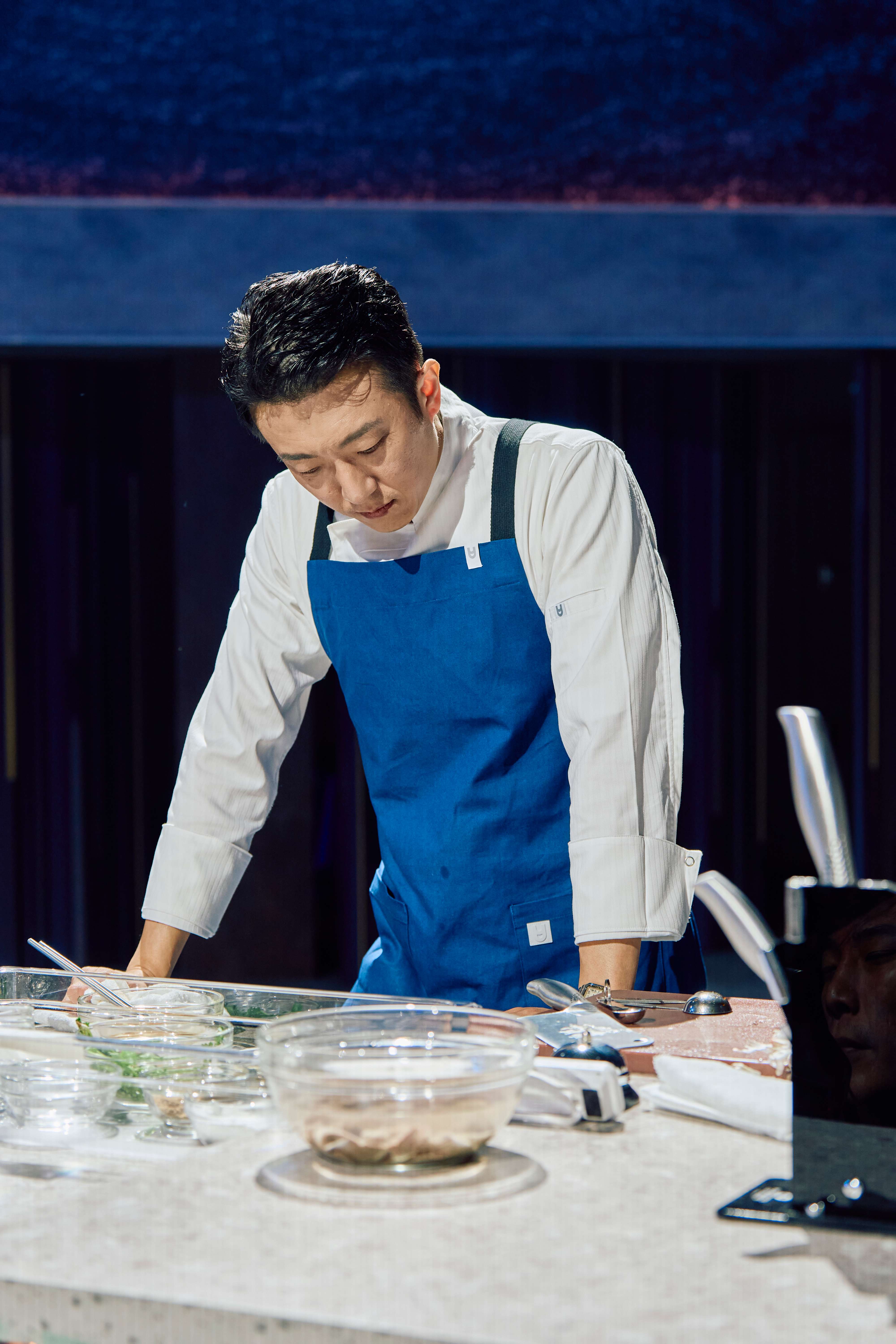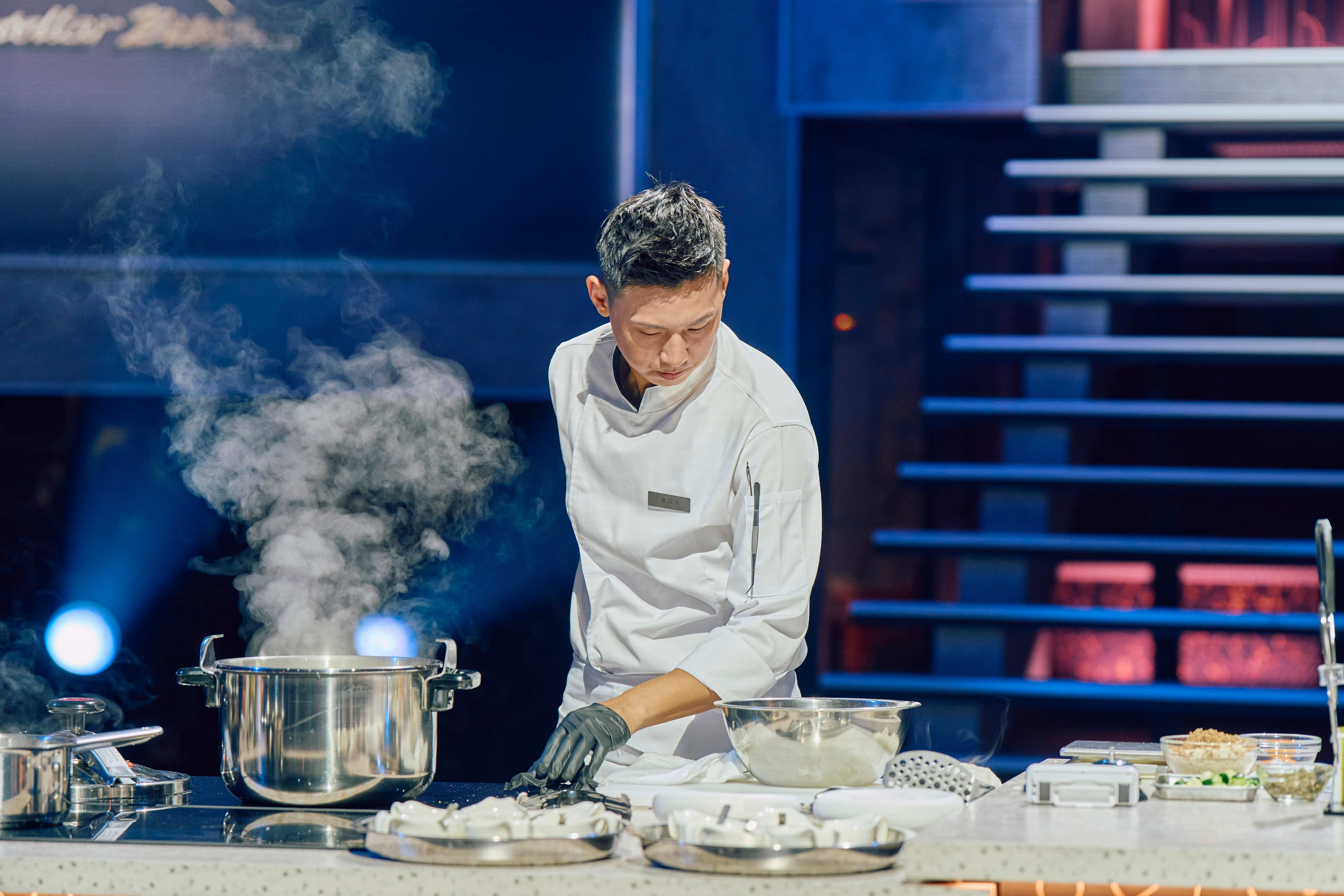 主廚組的同樣精彩絕倫,來自全台各路頂尖主廚更是一登場就不約而同的推出「中西合璧」的精緻味覺盛宴。主廚鄭淳豪的炭火烤鰻魚飯率先擄獲人心,他嚴選台灣池上米和日本富士山礦泉水,展現食材的極致純粹風味。其美味程度,竟讓原本不愛吃鰻魚的張懷秋都「淪陷」,直呼捨不得吃完,陳庭妮更瞪大眼睛舉手搶問:「能續碗嗎?」除了料理美味之外,大廚們更臨場展現創意!身為國宴主廚之子的施捷夫,運受西班牙和法式料理的創新風格,端出結合台味的沙茶肉燥馬鈴薯麵疙瘩,無國界美食深深讓胡宇威讚不絕口。而連年入選必比登的名廚陳勇孝,初登場也使出大絕招招牌「薑黃雞」,他透過控制精準油溫將雞肉炸得軟嫩多汁,讓安心亞和張懷秋愛不釋手、快速起身搶食!除了料理吸睛,一眼看起來嚴肅的勇孝主廚,沒想到一開口卻有超強反差萌,讓同場藝人和大廚都直呼超級可愛!